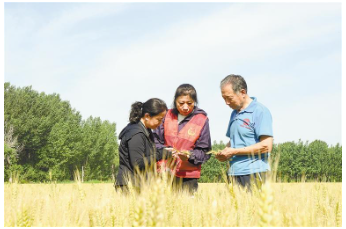 技術(shù)人員深入麥田,檢查小麥后期生長(zhǎng)情況并進(jìn)行實(shí)地農(nóng)技指導(dǎo),最大程度保障小麥產(chǎn)量和品質(zhì),為開鐮收割做好準(zhǔn)備。