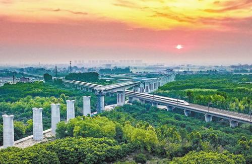6月18日,雄忻高鐵雄保段跨京廣高鐵轉(zhuǎn)體橋完成轉(zhuǎn)體。