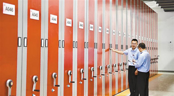 在申江萬國河北數(shù)據(jù)信息有限公司,工作人員正在盤點(diǎn)檔案。