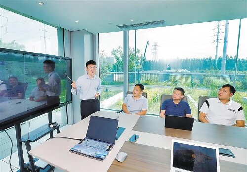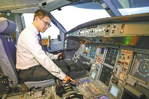②7月21日,南航翔翼河北分公司模擬機維護團隊的工作人員正在檢查模擬機工作狀態(tài)。