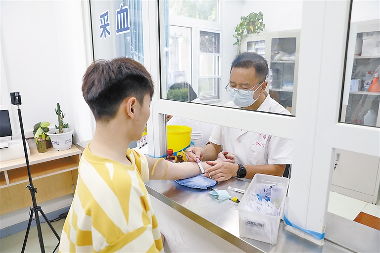 圖為應(yīng)征青年抽血檢查。 通訊員 海濤 本報記者 王娜 攝