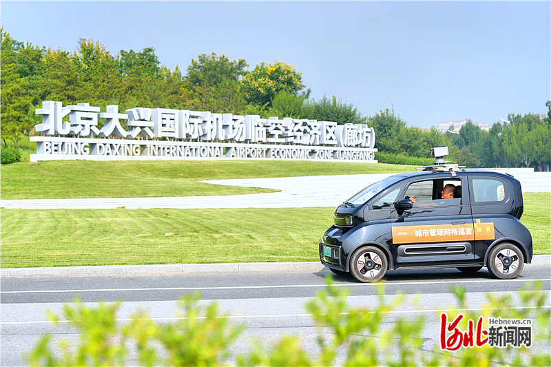 9月2日,智能巡邏車(chē)在臨空經(jīng)濟(jì)區(qū)(廊坊)街頭巡邏。 河北日?qǐng)?bào)記者王偉攝