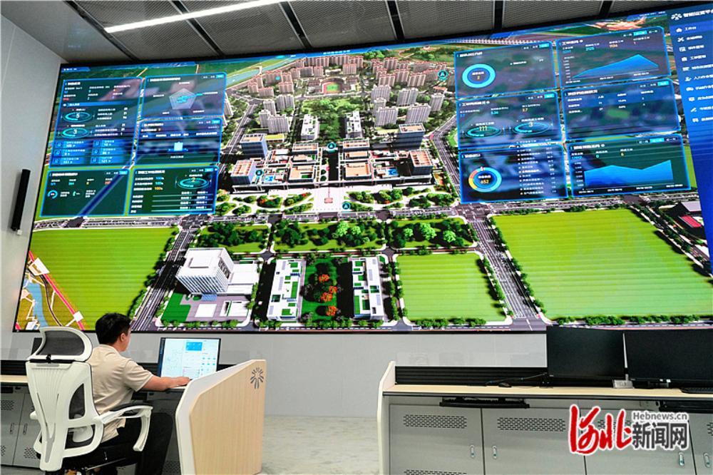 9月2日,在臨空經(jīng)濟(jì)區(qū)(廊坊)數(shù)智城市運(yùn)營(yíng)中心,工作人員通過(guò)監(jiān)控大屏實(shí)時(shí)查看城市運(yùn)轉(zhuǎn)情況。 河北日?qǐng)?bào)記者王偉攝