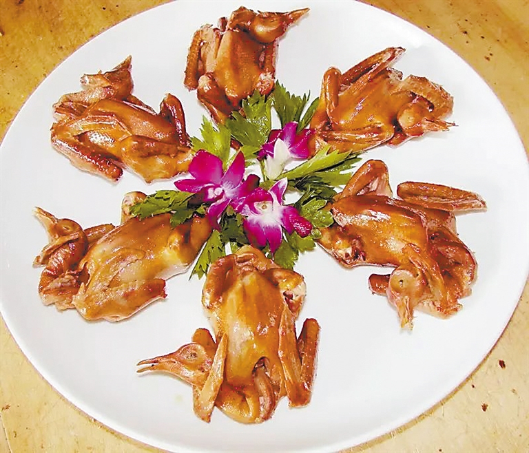 鴿肉入肺入腎,補精益氣,一鴿頂九雞。色澤金黃、熏香味濃、肉爛脫骨、入口醇香、回味悠長?,F(xiàn)已成為享譽京津的美食名片,曾榮獲“中國名宴獎”“中國名菜獎”“中國金鼎獎”三項大獎。