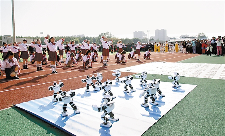 圖為互動現(xiàn)場人機共舞表演。記者 滕雪葉 通訊員 陳志國 攝