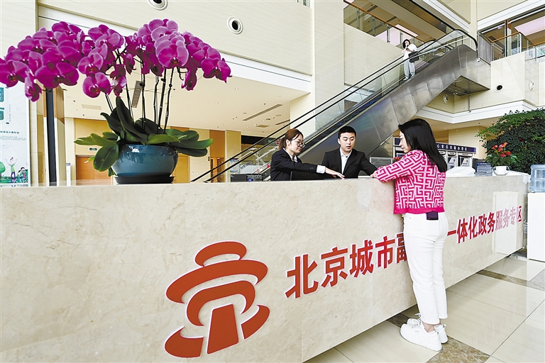 ②市民在位于香河縣的北京城市副中心政務(wù)服務(wù)中心一體化辦事大廳辦理業(yè)務(wù)。