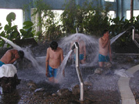 位于霸州的茗湯溫泉水療養(yǎng)生樂園有室內(nèi)和露天溫泉池共108個。室內(nèi)區(qū)設(shè)有沖擊泉、氣泡泉、藥浴、花瓣浴、泥漿浴、高溫浴等風(fēng)格獨(dú)特的大小溫泉池54個;露天溫泉水療區(qū)內(nèi)設(shè)有大溫泉池,可容納百余人,區(qū)內(nèi)建有假山,有水簾從上層層下瀉;緊鄰大型溫泉池的是人工沙灘,可以在浴后享受日光浴。 |
