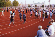 時(shí)代廣場(chǎng)共分二期工程建設(shè)。一期工程分為東區(qū)工程和中區(qū)工程,占地220畝,東區(qū)工程主要包括硬質(zhì)鋪裝及停車(chē)場(chǎng)、塑膠體育場(chǎng)、下沉式劇場(chǎng)、水幕電影,中區(qū)工程借助原人民公園的自然湖面和綠島;二期工程為西區(qū)工程,占地160畝,主要有博物館、老年活動(dòng)中心、少年科技活動(dòng)中心、老火車(chē)站遺址等?,F(xiàn)一期工程已竣工并向市民開(kāi)放。廣場(chǎng)占地7萬(wàn)平方米,是我省最大的集休閑、娛樂(lè)、健身等功能于一體的綜合性廣場(chǎng)。主要設(shè)施包括:雕塑水池、下沉式劇場(chǎng)、水幕電影、塑膠體育場(chǎng)。廣場(chǎng)中心雕塑高17米,四周矩陣式跑泉與下沉式劇場(chǎng)主噴泉隨音樂(lè)節(jié)拍起伏跌蕩,顯示出剛?cè)嵯酀?jì)的效果;下沉式劇場(chǎng)背湖而立,可容納2000人觀看演出;水幕電影以水幕取代了傳統(tǒng)布幕,投影系統(tǒng)采用比利時(shí)BACO高亮度投影儀,可將VCD、電視節(jié)目以及計(jì)算機(jī)所形成的各種圖景放映在水幕屏上,我市是我省第一個(gè)具備該種設(shè)施的城市;環(huán)型塑膠體育場(chǎng)位于廣場(chǎng)南側(cè),占地3000平方米。