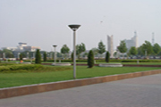 廣場(chǎng)綠化以銀杏、法桐、白蠟、油松等為主,共植樹(shù)300余株、鋪設(shè)草坪9000平方米,綠地率達(dá)60%以上。整個(gè)廣場(chǎng)均由花崗巖石材鋪設(shè),主色調(diào)為暖色,呈格狀圖案,色彩淡雅、別致。