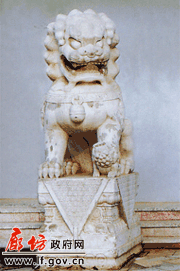 乾隆行宮獅子雕刻別致,雄偉高大,通高2.5米,由獅身、獅座兩部分組成。