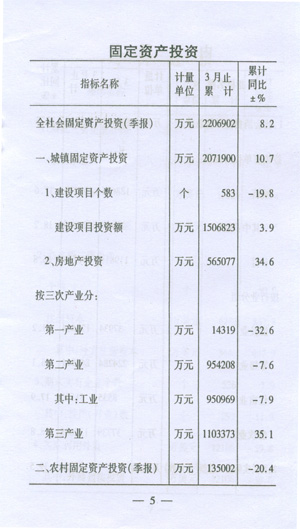 ——投資平穩(wěn)增長。全社會固定資產(chǎn)投資完成220.7億元,增長8.2%,其中城鎮(zhèn)固定資產(chǎn)投資完成207.2億元,增長10.7%,與上年同期相比增速分別回落16.2個和15.7個百分點(diǎn)。