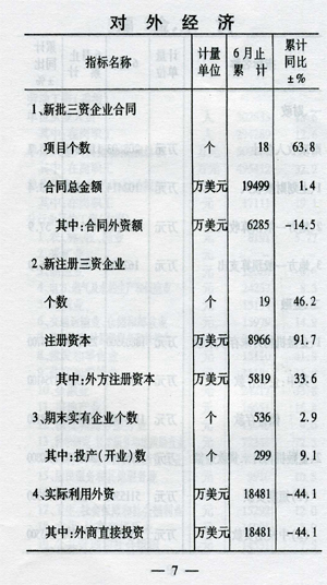 ——利用外資下降。全市實(shí)際利用外資18481萬(wàn)美元,同比下降44.1%,比上年同期回落102.4個(gè)百分點(diǎn),18481萬(wàn)美元全部為外商直接投資。