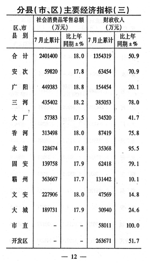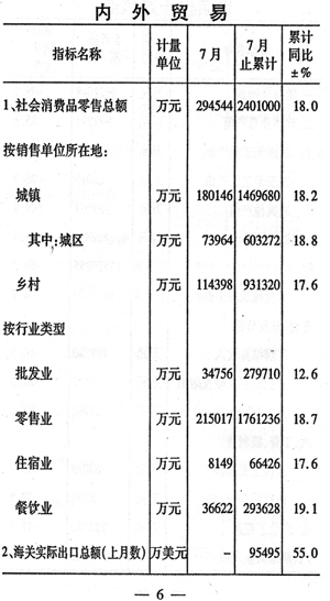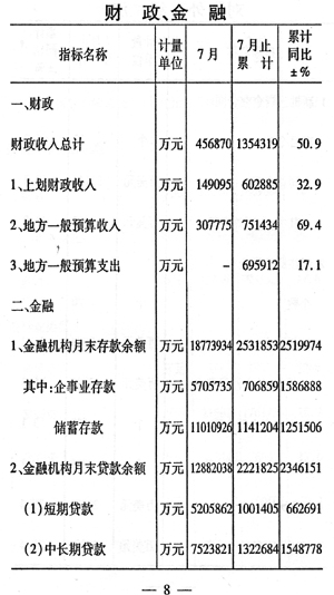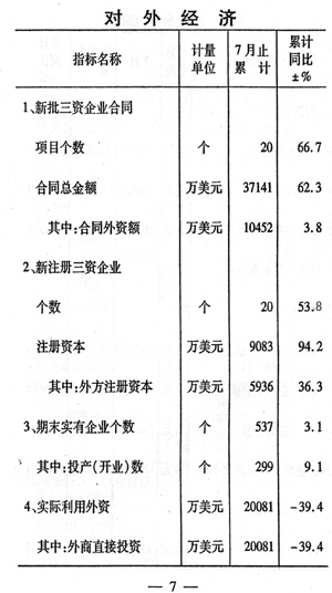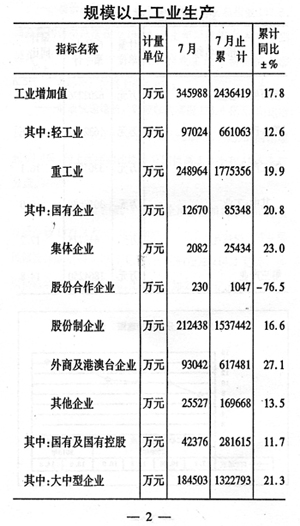 前七個月全市國民經(jīng)濟運行情況如下:
