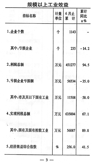 工業(yè)效益良好。上半年全市規(guī)模以上工業(yè)實現(xiàn)利稅和利潤分別為63.5億元和45.1億元,同比分別增長67.1%和94.5%,與上月相比增速分別回落12.0個和20.9個百分點。
