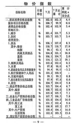 ——物價小幅上揚。全市居民消費價格總指數(shù)102.3,商品零售價格總指數(shù)為104.4,與上年同期相比,漲幅分別提高4.4個和6.7個百分點。農(nóng)業(yè)生產(chǎn)資料價格上漲6.5%,工業(yè)品出廠價格上漲4.O%。