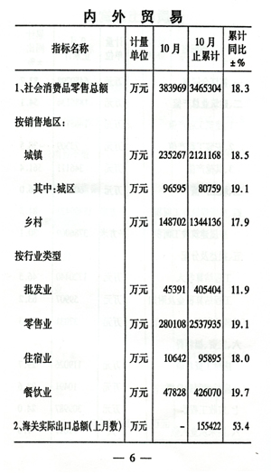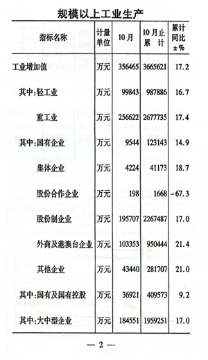 前十個(gè)月全市國(guó)民經(jīng)濟(jì)運(yùn)行情況如下:
