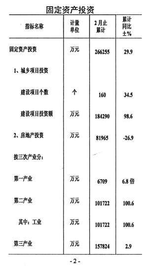 ——投資增速較快。固定資產(chǎn)投資完成26.6億元,增長29.9%,其中房地產(chǎn)投資完成8.2億元,下降26.9%。分三次產(chǎn)業(yè)看,一、二、三產(chǎn)分別增長6.8倍、100.6%和2.9%。