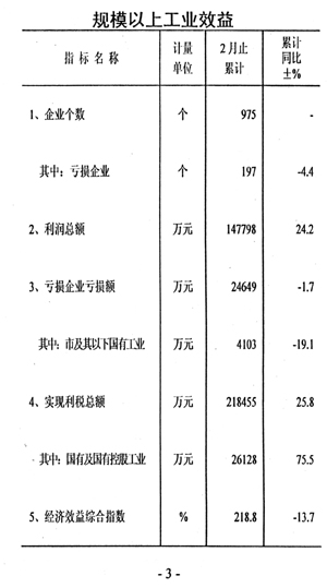 企業(yè)效益良好。前兩個(gè)月規(guī)模以上工業(yè)企業(yè)實(shí)現(xiàn)利稅和利潤(rùn)分別為21.8億元和14.8億元,同比分別增長(zhǎng)25.8%和24.2%。