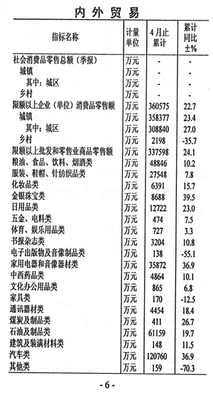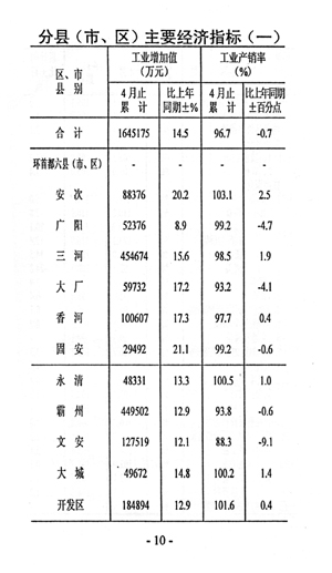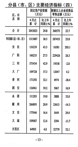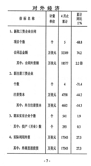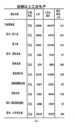 今年前四個(gè)月全市國(guó)民經(jīng)濟(jì)運(yùn)行情況如下: