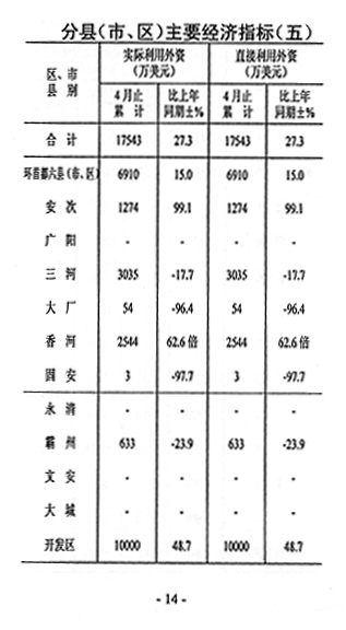 一一外資較快增長(zhǎng)。實(shí)際利用外資完成17543萬(wàn)美元,增長(zhǎng)27.3%,與一季度相比提高8.5個(gè)百分點(diǎn)。17543萬(wàn)美元全部為外商直接投資。