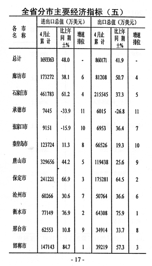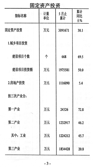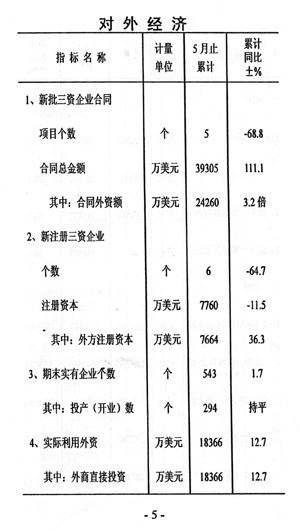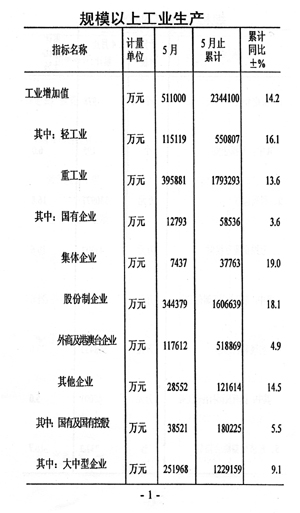今年前五個月全市國民經(jīng)濟(jì)運行情況如下: