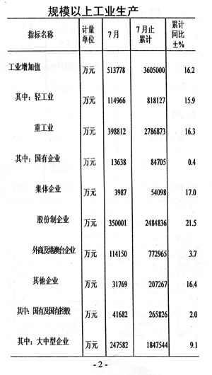 前七個(gè)月,全市國(guó)民經(jīng)濟(jì)運(yùn)行情況如下:
