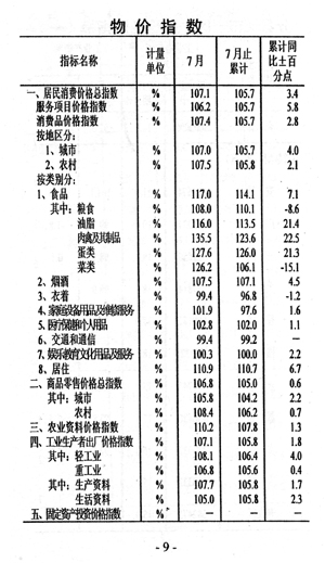 ——物價(jià)高位運(yùn)行。全市居民消費(fèi)價(jià)格總指數(shù)105.7,同比提高3.4個(gè)百分點(diǎn)。商品零售價(jià)格總指數(shù)105.0,同比提高0.6個(gè)百分點(diǎn)。農(nóng)業(yè)生產(chǎn)資料價(jià)格上漲7.8%,工業(yè)生產(chǎn)者出廠價(jià)格上漲5.8%。