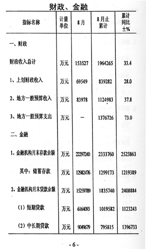 ——金融存貸穩(wěn)定。截至8月底,全市本外幣各項(xiàng)存款余額2229.7億元,比年初增加233.4億元,其中城鄉(xiāng)居民儲(chǔ)蓄存款余額1298.2億元,比年初增加129.9億元,各項(xiàng)貸款余額1526.O億元,比年初增加183.6億元。