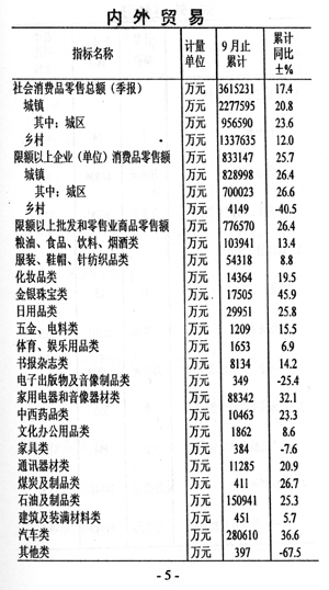 一一消費穩(wěn)定增長。社會消費品零售總額完成361.5億元,增長17.4%,與上半年相比增速提高0.4個百分點。分城鄉(xiāng)看,城市市場快于農(nóng)村,城鎮(zhèn)實現(xiàn)消費品零售總額227.8億元,增長20.8%,高于鄉(xiāng)村消費8.8個百分點。