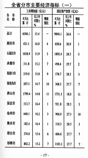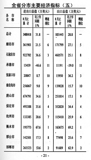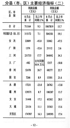 企業(yè)效益回落。前八個月規(guī)模以上工業(yè)企業(yè)實現(xiàn)利稅和利潤分別為106.8億元和71.1億元,同比分別增長15.7%和9.3%,與上月相比增速分別回落5.2個和5.9個百分點。