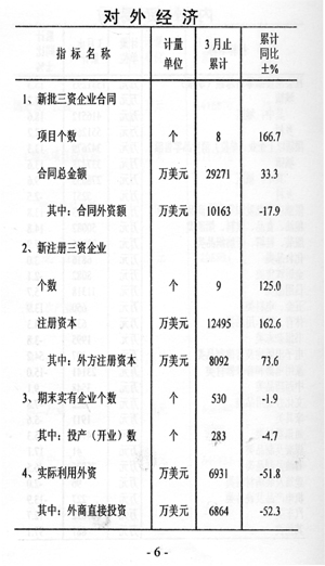 ——外資降幅減緩。實際利用外資完成6931萬美元,增速下降51.8%,與前兩個月相比降幅減緩13.3個百分點,與上年同期相比增速回落70.6個百分點,外商直接投資完成6864萬美元。