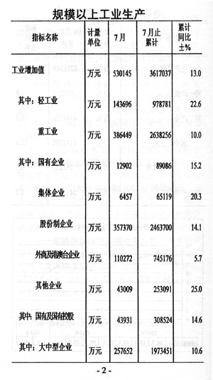 1-7月份,全市國民經(jīng)濟運行情況如下: