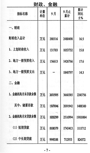 ——財政增長較快。財政收入實現248.O億元,增長16.5%,與上年同期相比回落14.0個百分點,其中地方一般預算收入實現142.7億元,增長17.6%,與上年同期相比回落16.7個百分點。