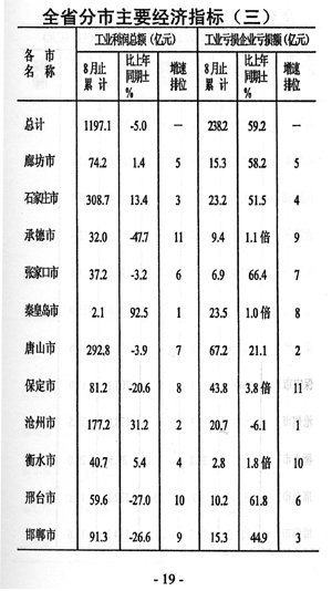 工業(yè)利潤轉增。前八個月規(guī)模以上工業(yè)企業(yè)實現利稅113.7億元,增長6.4%,與上年同期相比回落13.7個百分點,其中實現利潤74.2億元,增長1.4%,這是今年以來的首次正增長,與上年同期相比回落7.9個百分點。