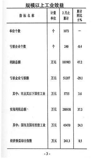 效益恢復性增長。前兩個月規(guī)模以上工業(yè)利潤延續(xù)上年四季度以來的回升趨勢,繼續(xù)呈恢復性增長態(tài)勢。全市規(guī)模以上工業(yè)實現(xiàn)利潤總額18.2億元,增長47.2%,與上年同期相比增速提高65.9個百分點。