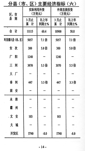 ——外資增幅較大。全市實際利用外資11115萬美元,增長60.4%,與前兩個月相比增速提高99.1個百分點,與上年同期相比增速提高112.2個百分點。其中外商直接投資完成10900萬美元,增長58.8%。