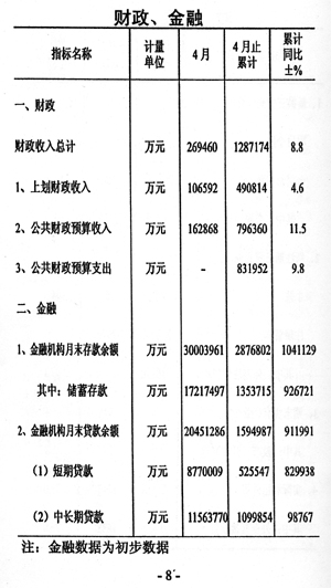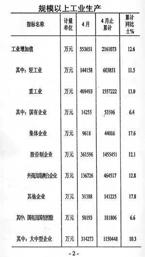 1-4月份,全市國民經(jīng)濟運行情況如下: