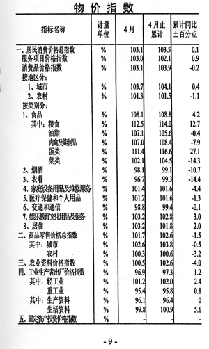 ——物價指數(shù)上漲。全市居民消費價格總指數(shù)103.5,同比提高0.1個百分點,商品零售價格指數(shù)102.6,同比回落1.5個百分點。農(nóng)業(yè)生產(chǎn)資料價格上漲2.6%,工業(yè)生產(chǎn)者出廠價格指數(shù)下降2.7%。