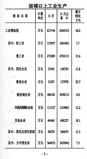 1-11月份全市國(guó)民經(jīng)濟(jì)運(yùn)行綜述