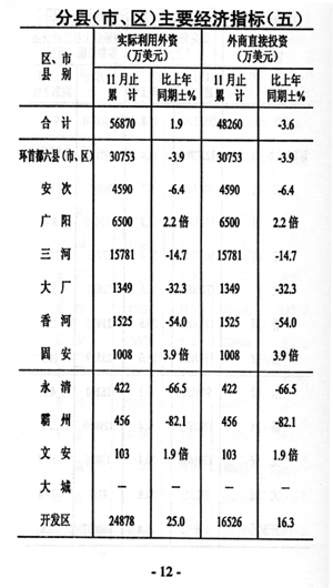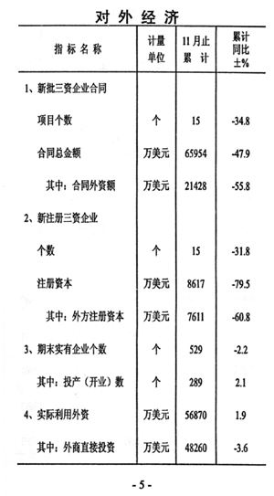 一一外資增速平穩(wěn)。全市實(shí)際利用外資56870萬(wàn)美元,增長(zhǎng)1.9%,與1-10月份相比增速提高0.4個(gè)百分點(diǎn)。其中外商直接投資完成48260萬(wàn)美元,下降3.6%,與1-10月份相比增速回落20.5個(gè)百分點(diǎn)。