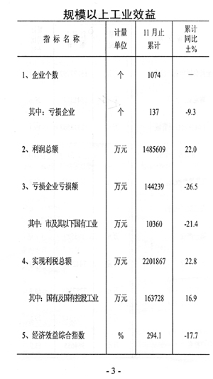 工業(yè)效益快速增長。1-11月份,規(guī)模以上工業(yè)實現(xiàn)利潤總額148.6億元,增長22.0%,增速比上年提高27.8個百分點。實現(xiàn)利稅總額220.2億元,增長22.8%,增速比上年提高23.5個百分點。