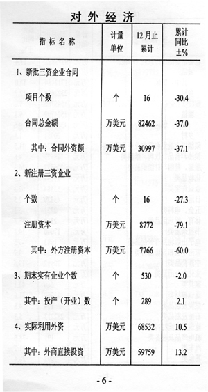 一一利用外資良好。實際利用外資完成68532萬美元,增長10.5%,增速比上年提高3.6個百分點。其中,外商直接投資59759萬美元,增長13.2%,增速比上年提高21.4個百分點。