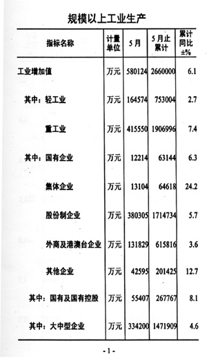 1-5月份,全市宏觀經(jīng)濟(jì)運(yùn)行情況如下: