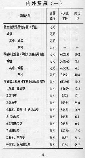 ——消費(fèi)增速趨緩。全市限額以上單位實(shí)現(xiàn)消費(fèi)品零售額63.2億元,同比增長(zhǎng)10.2%,增速比一季度回落3.4個(gè)百分點(diǎn),比上年同期提高3.5個(gè)百分點(diǎn)。