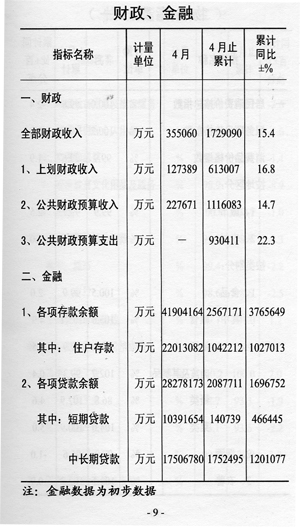——金融存貨穩(wěn)定。截至4月底,全市各項(xiàng)存款余額4190.4億元,比年初增加256.7億元,其中住戶存款余額2201.3億元,比年初增加104.2億元,各項(xiàng)貸款余額2827.8億元,比年初增加208.8億元。?