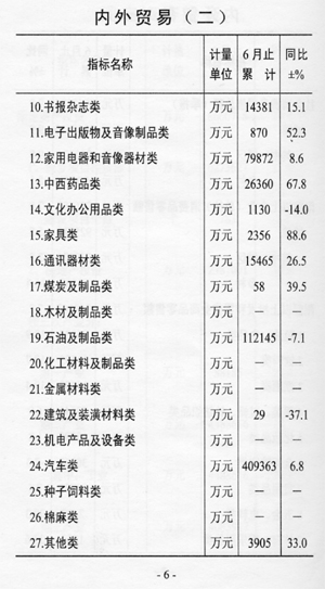 ——工業(yè)持續(xù)回升。全市規(guī)模以上工業(yè)增加值完成350.0億元,同比增長6.3%,比一季度提高0.3個百分點,比1-5月份提高0.1個百分點。全市規(guī)模以上工業(yè)33個行業(yè)大類中,24個行業(yè)增加值同比增長。