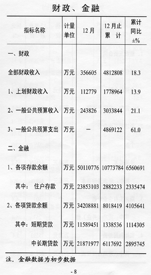 ——金融形勢穩(wěn)定。全市本外幣各項存款余額5011.l億元,比年初增加1077.4億元。其中,城鄉(xiāng)居民儲蓄存款余額2385.3億元,比年初增加288.2億元。各項貸款余額3420.9億元,比年初增加801.8億元。存貸比達68.3%。
