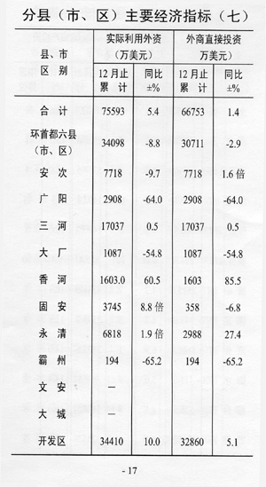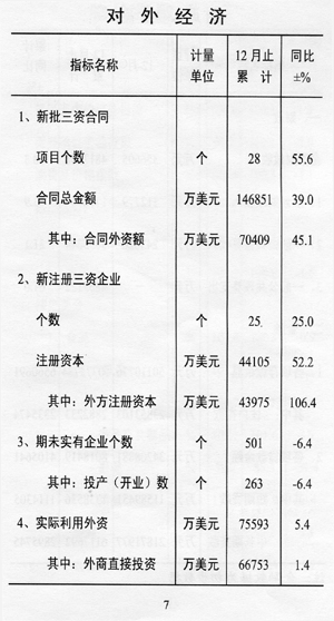 ——利用外資良好。實際利用外資完成75593萬美元,完成全年目標的100.8%。其中外商直接投資66753萬美元。