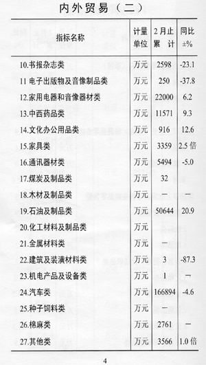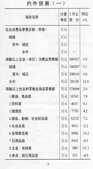 ——消費(fèi)緩慢增長(zhǎng)。限額以上單位消費(fèi)品零售額完成38.9億元,同比增長(zhǎng)l.9%,與上年同期相比回落6.1個(gè)百分點(diǎn)。其中,城鎮(zhèn)實(shí)現(xiàn)消費(fèi)品零售額36.0億元,增長(zhǎng)3.1%,鄉(xiāng)村實(shí)現(xiàn)消費(fèi)品零售額2.9億元,下降12.8%。
