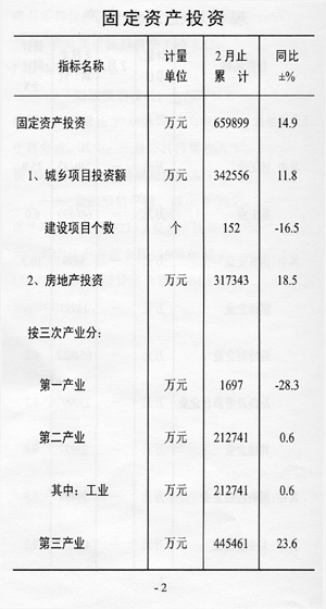 ——投資較快增長(zhǎng)。固定資產(chǎn)投資完成66.0億元,同比增長(zhǎng)14.9%,與上年同期相比回落2.1個(gè)百分點(diǎn)。其中,城鄉(xiāng)項(xiàng)目投資34.3億元,增長(zhǎng)11.8%,;房地產(chǎn)開(kāi)發(fā)投資31.7億元,增長(zhǎng)18.5%。